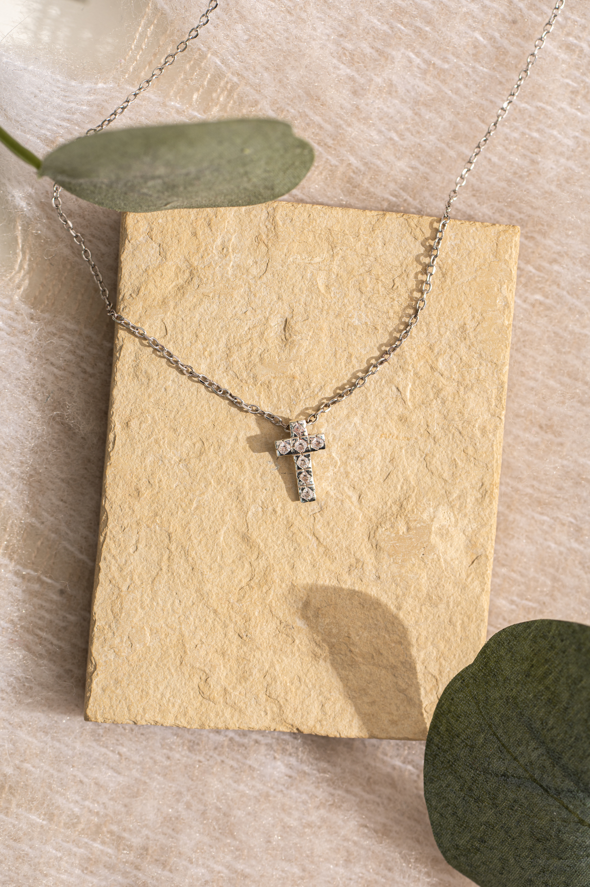Fazon: Cirkónia Féldrágakő Kereszt Sárga Arany 14K Nyaklánc