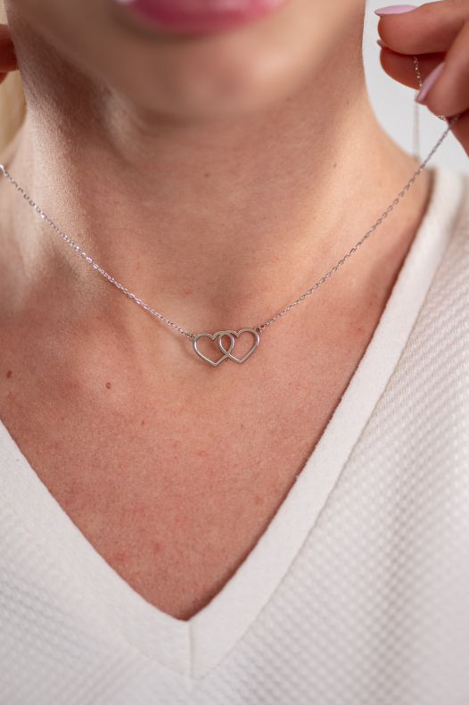 Fazon: Dupla kontúr szív betűvel fehér arany 14K nyaklánc