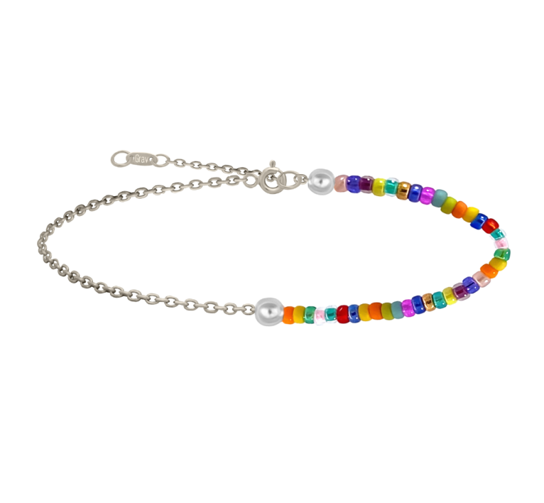 Fazon: Színes Gyöngy Lánc Fehér Arany 14K Bokalánc