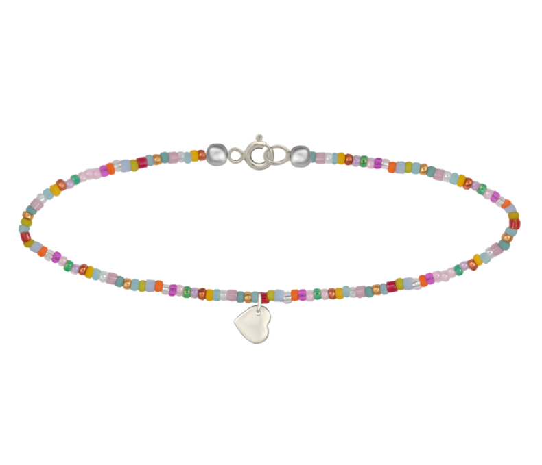 Fazon: Színes Gyöngy Szív Fehér Arany 14K Bokalánc