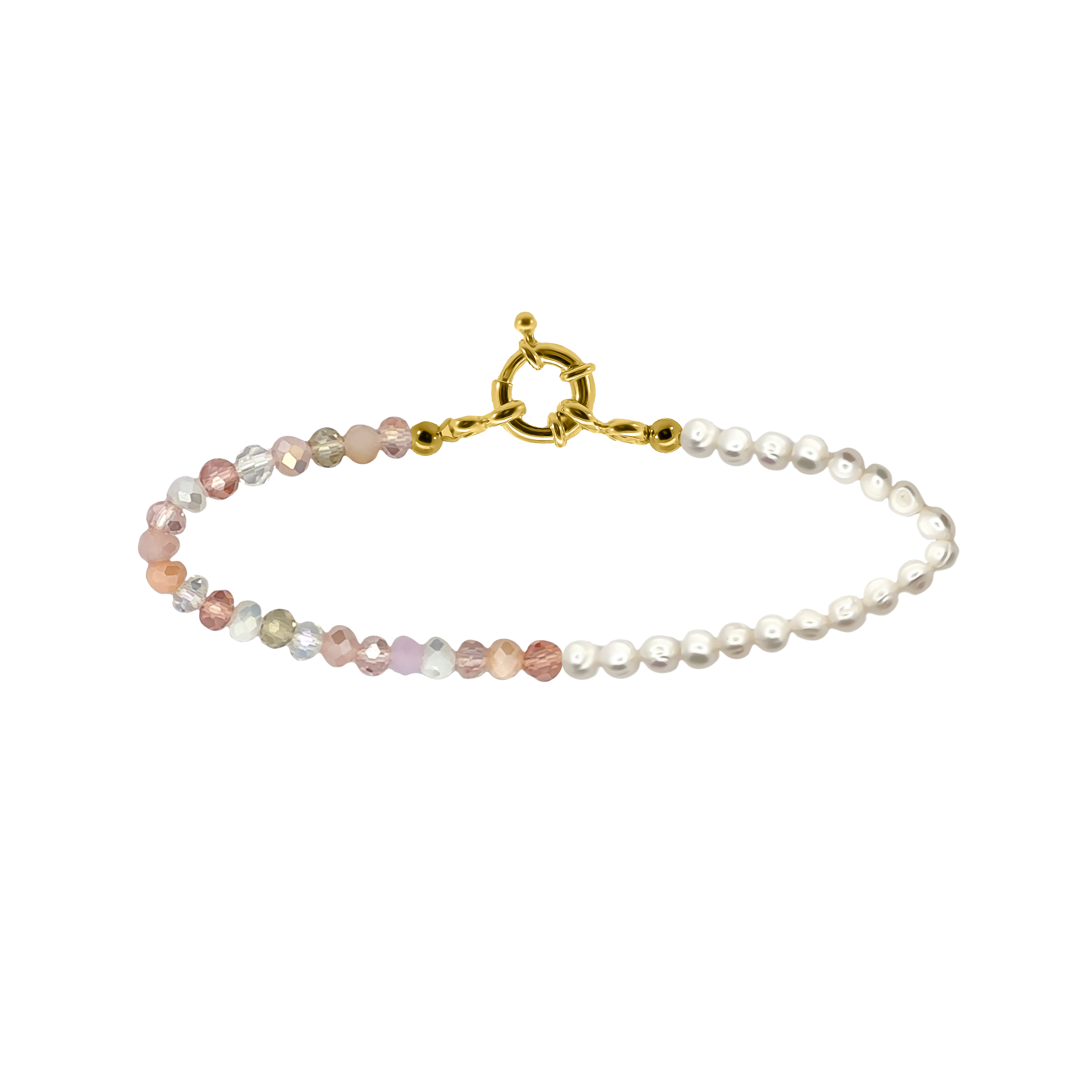Fazon: Gyöngy Rózsaszín és Fehér Kristállyal Sárga Aranyozott Ezüst 925 Karkötő