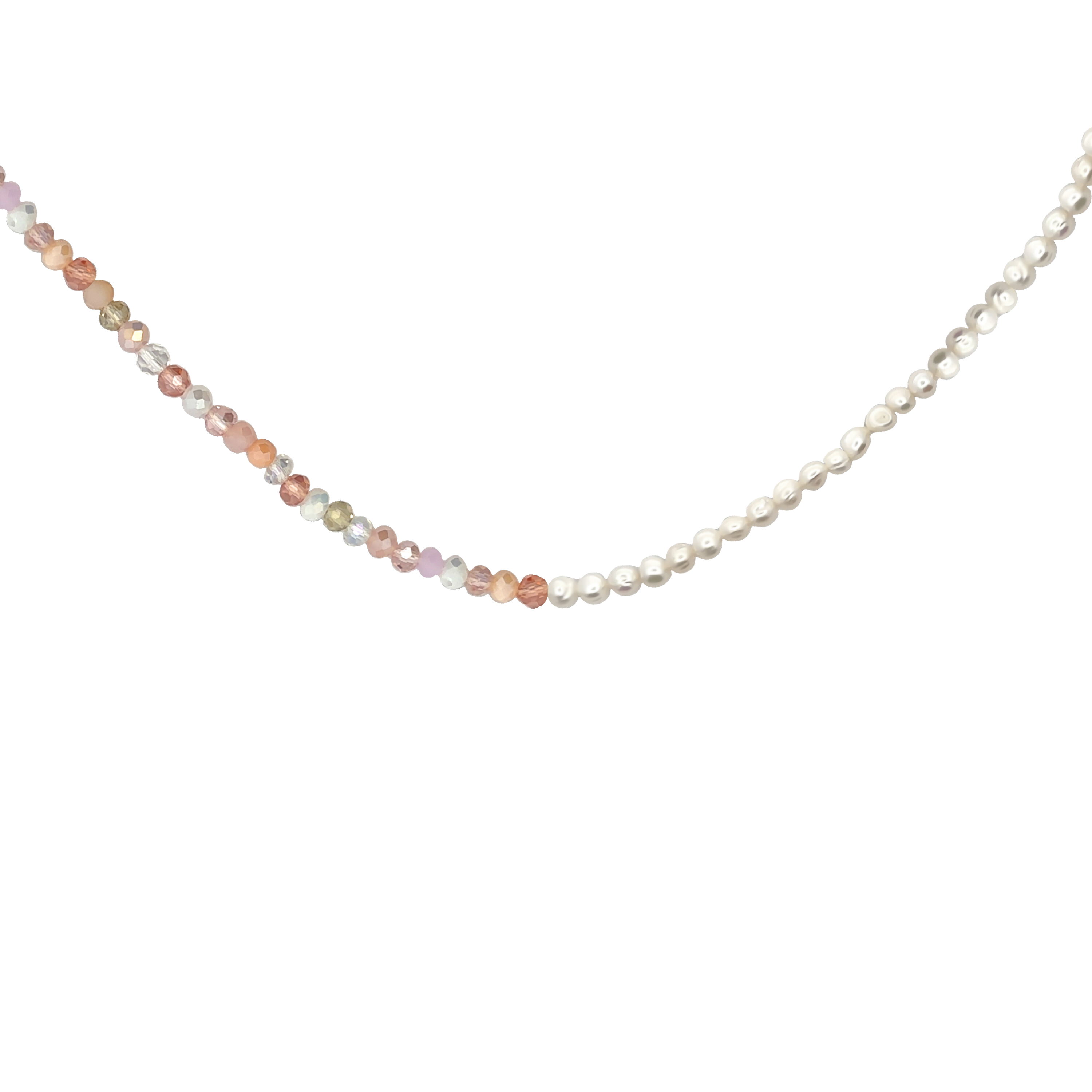 Fazon: Gyöngy Rózsaszín és Fehér Kristállyal Sárga Aranyozott Ezüst 925 Nyaklánc
