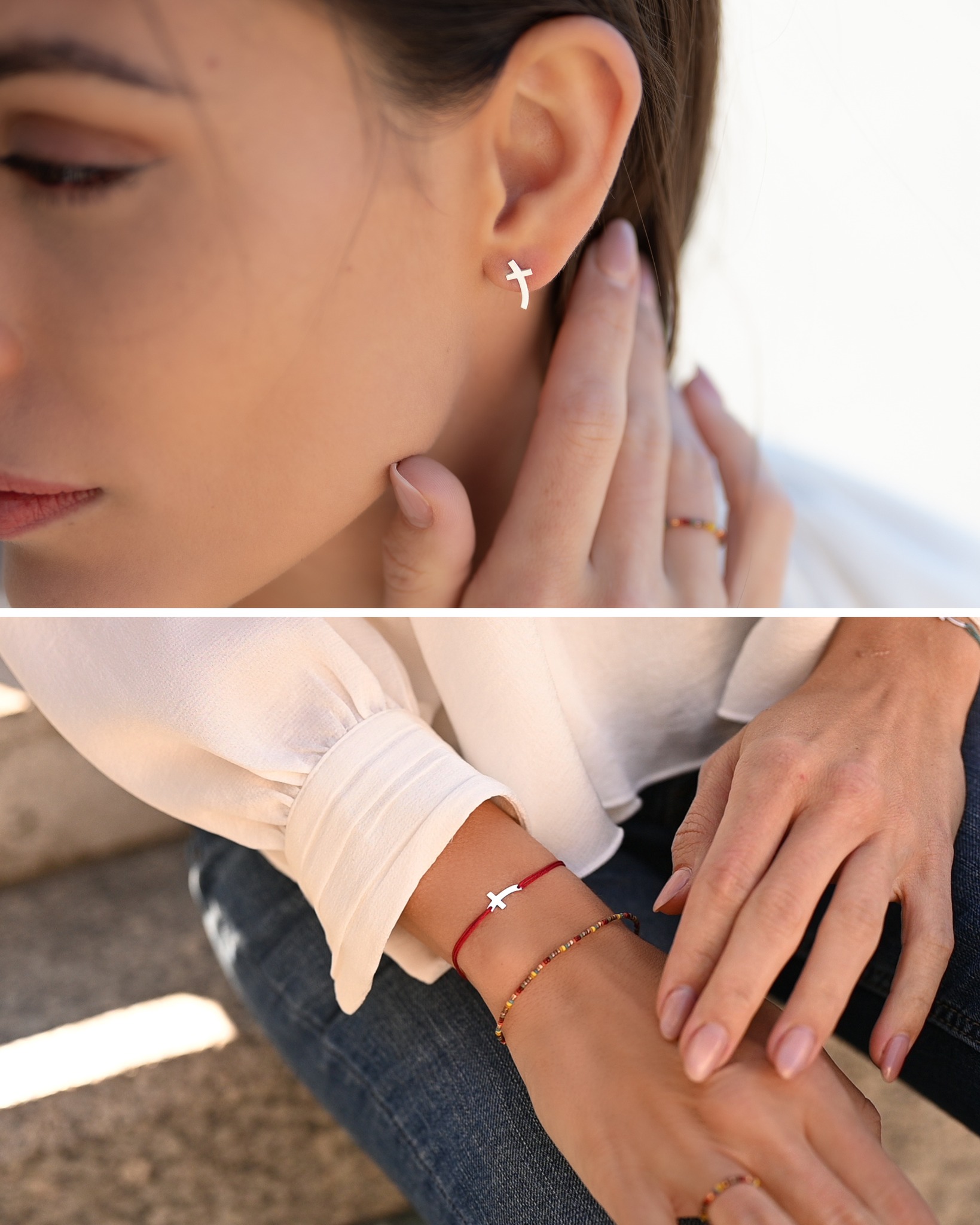 Fazon: Kereszt Íves Ezüst 925 Fülbevaló